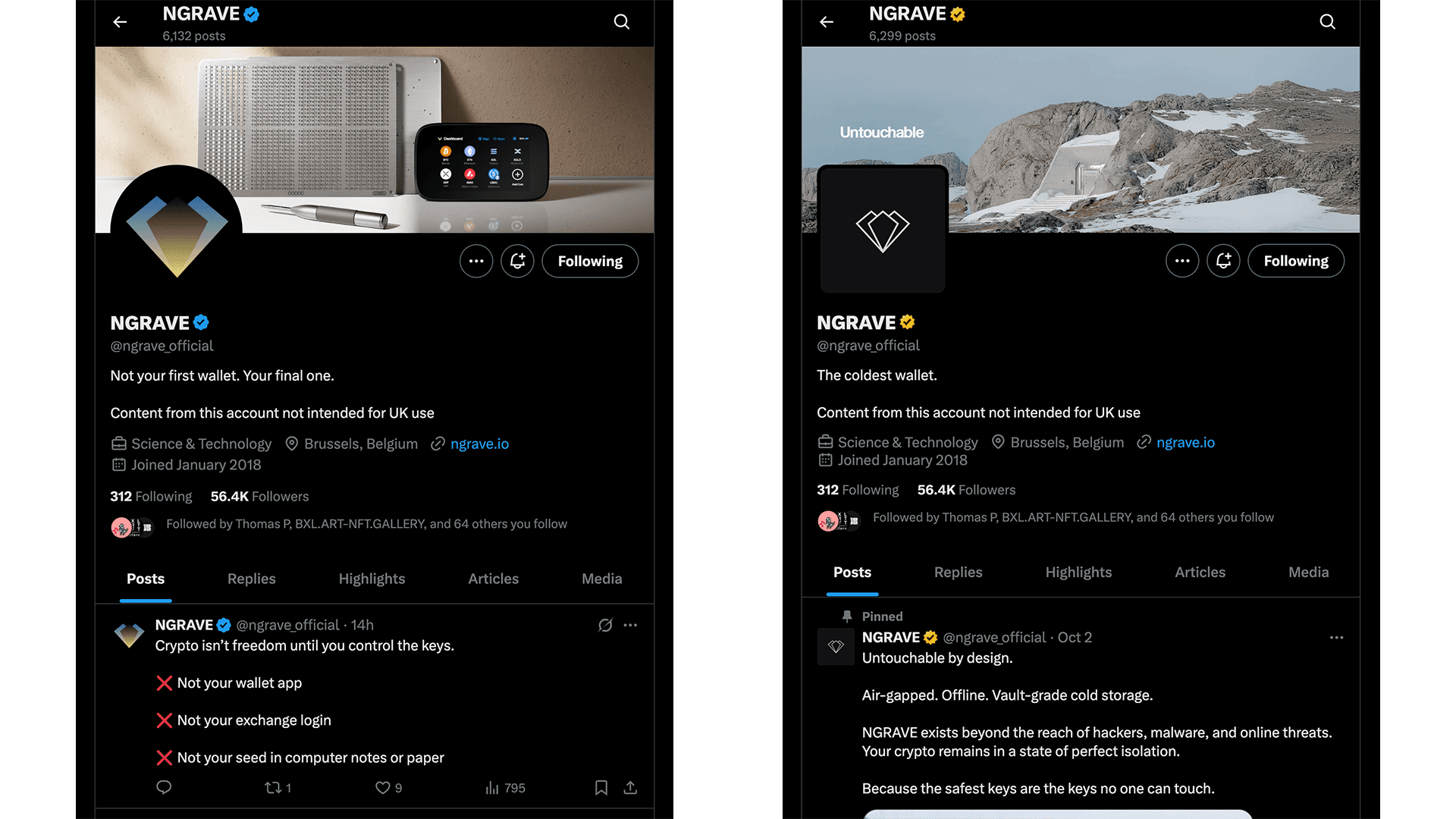 NGRAVE was stuck in a generic start-up aesthetic. They were preaching tech and features and lost market share even though they're the most secure wallet and have an average secured value of $130k in assets per user.